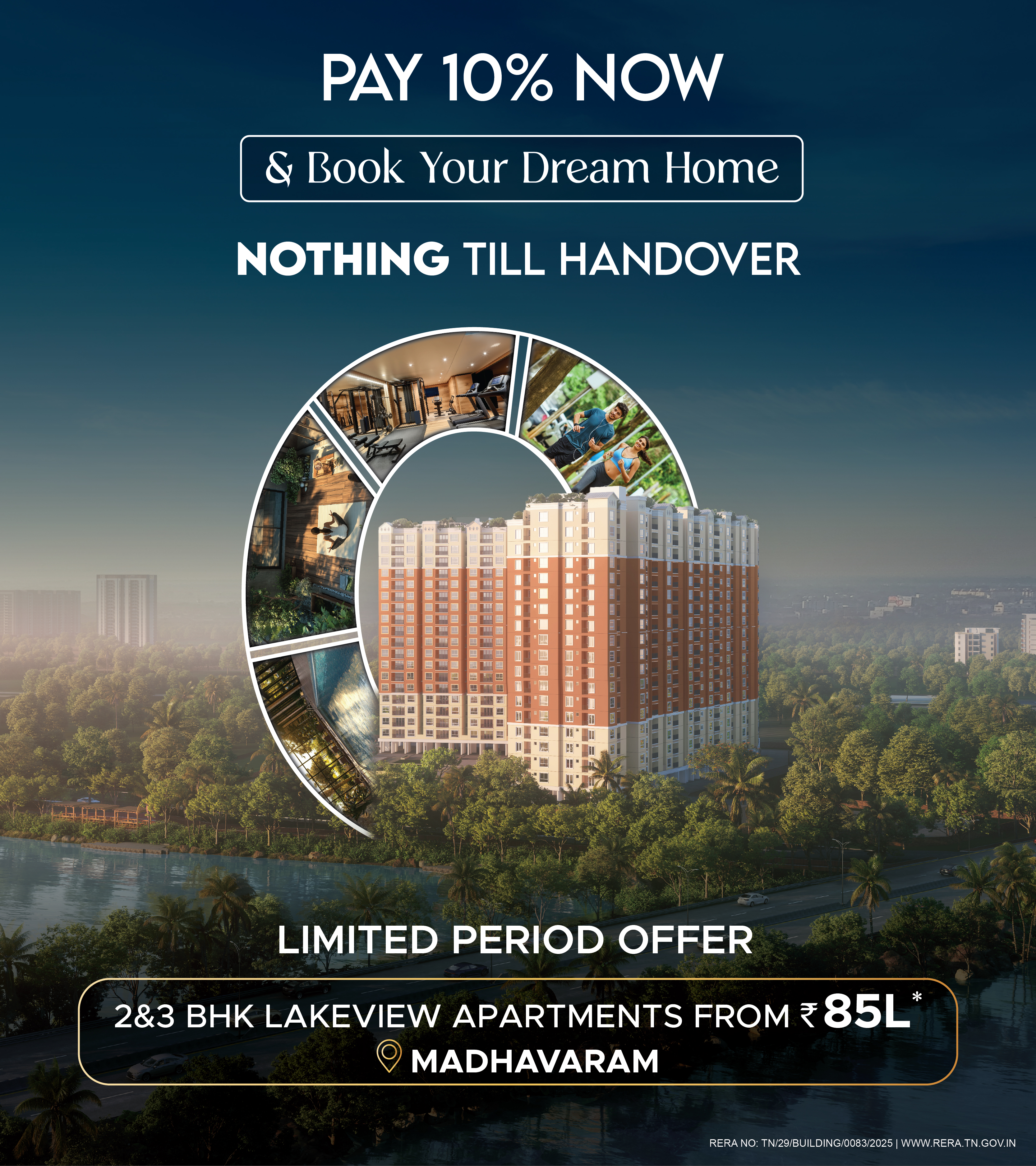Relish a life of Style and Sophistication nestled amidst the serene beauty of Retteri Lake at Urbanrise The Lakes Edge in Madhavaram. Experience modernity in meticulously designed 2 and 3 BHK apartments that redefine urban living. Built on 5 acres of pristine surroundings, this exclusive community offers congestion-free living, ensuring ample breathing space and privacy for every resident. Employing the cutting-edge MIVAN construction technology, The Lakes Edge ensures durability, safety, and superior quality living.